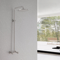 - Ducha exterior en acero inoxidable cepillado y acabado de níquel.